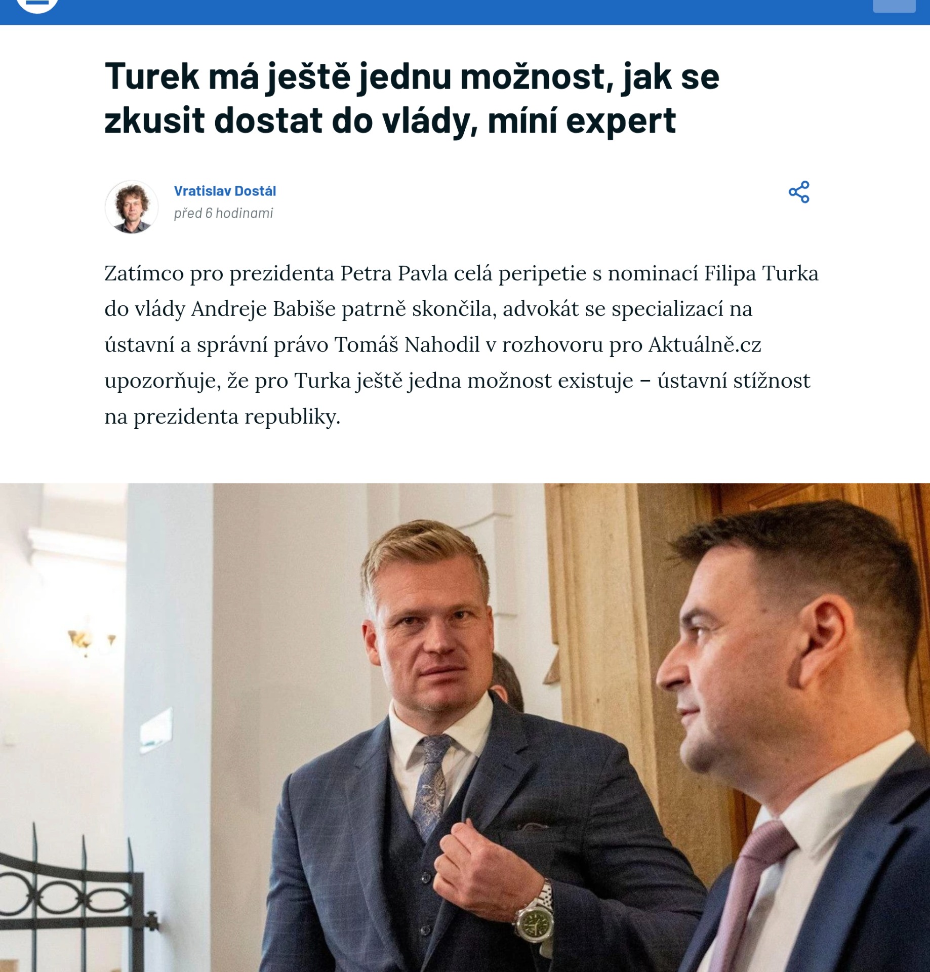 "Pro mne jako činného advokáta, který se zabývá ústavním právem, jsou důležitější argumenty právní, které Hrad uveřejnil ve svém posledním tiskovém prohlášení. Jsou obecné, ústavní právo je ze své podstaty skoro nejobecnější právní obor, ale shrnuly to dost dobře na to, aby Hrad ustál i případnou kompetenční žalobu."